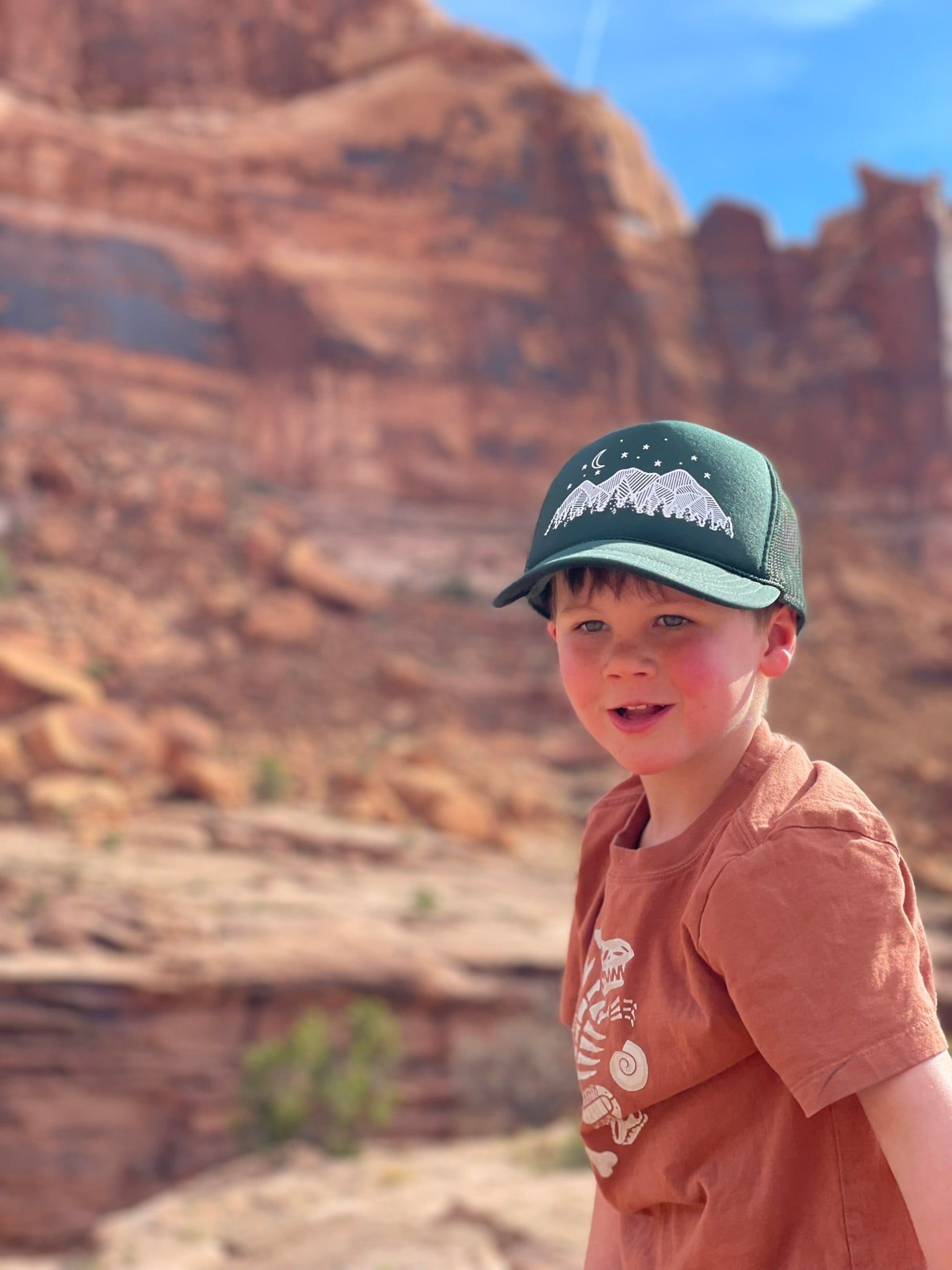 Kid Wild Tree Trucker Hat (Dark Green) – The ultimate ranger accessory. Lightweight, adjustable, and adventure-ready—perfect for hikes, road trips, or backyard explorations.